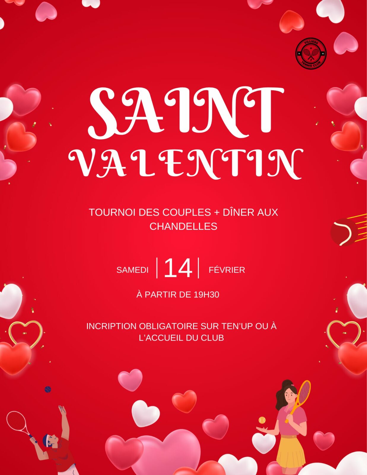 Le samedi 14, la Saint-Valentin s’invite au Villiers Tennis Club à partir de 19h30 pour une soirée placée sous le signe du sport et de la convivialité. Les couples seront à l’honneur à travers un tournoi de tennis en doubles, pensé pour partager un moment original et complice sur les courts. La soirée se prolongera ensuite autour d’un dîner aux chandelles, dans une ambiance chaleureuse et élégante.