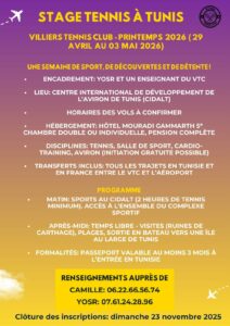 Le Villiers Tennis Club organise un stage exceptionnel à Tunis du mercredi 29 avril au dimanche 3 mai (4 nuits).